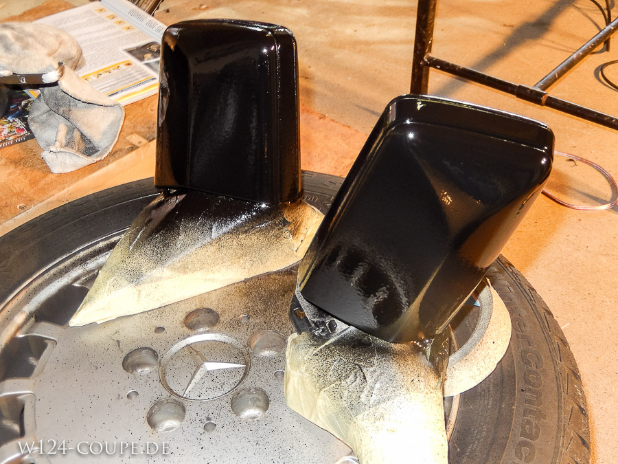 Auch die Außenspiegel bekommen einen Überzug mit Sprühfolie